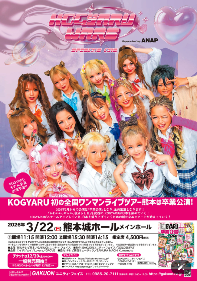 ANAP×KOGYARUの公式グッズをはじめ、セボンスター、そして3月22日の熊本公演チケットも販売いたします!